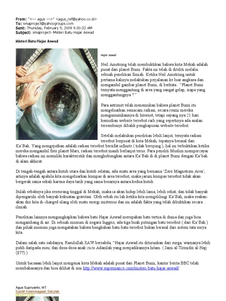 Sehingga kalau diterjemahkan secara bahasa adalah batu hitam. Mencium hajar aswad merupakan salah satu sunah nabi muhammad saw. Foto hajar aswad tersebut merupakan foto kali pertama hajar aswad dipotret dengan resolusi tinggi yakni dengan 49.000 megapiksel. Ketika itu, allah memerintahkan nabi ibrahim as dan ismail. Barangsiapa yang tidak bisa berbaiat kepada rasulullah.